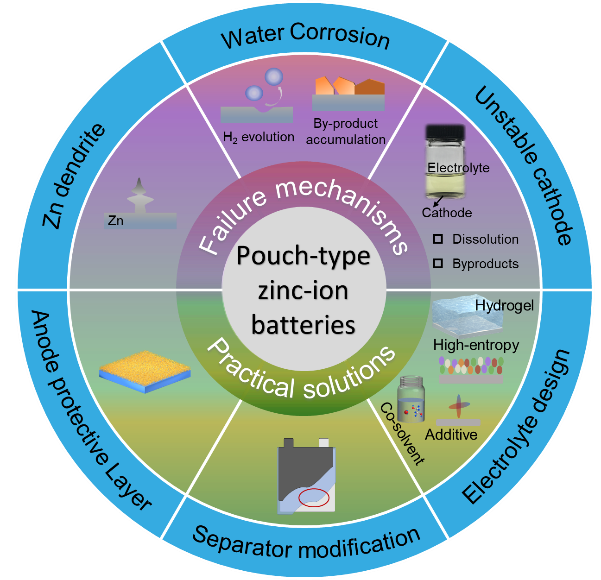 近日,我所无机膜与催化新材料研究组(504组)杨维慎研究员和朱凯月研究员团队应邀发表了软包水系锌离子电池的综述文章,系统总结了软包水系锌离子电池的失效机制及实用化解决方案,并对未来研究方向作了展望,为推进锌离子电池的实际应用提供参考。