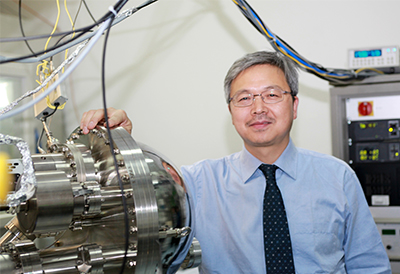 杨学明在大连化物所实验室真空腔体前。