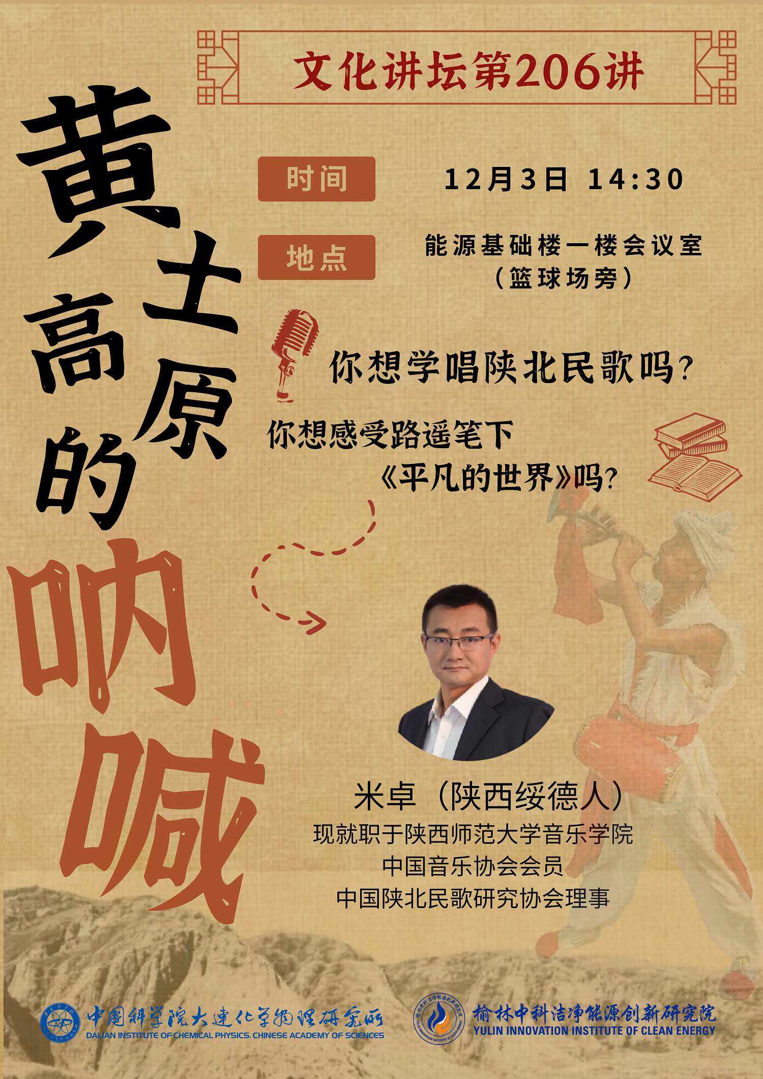 关于举办文化讲坛第206讲“黄土高原的呐喊:陕北民歌”的通知