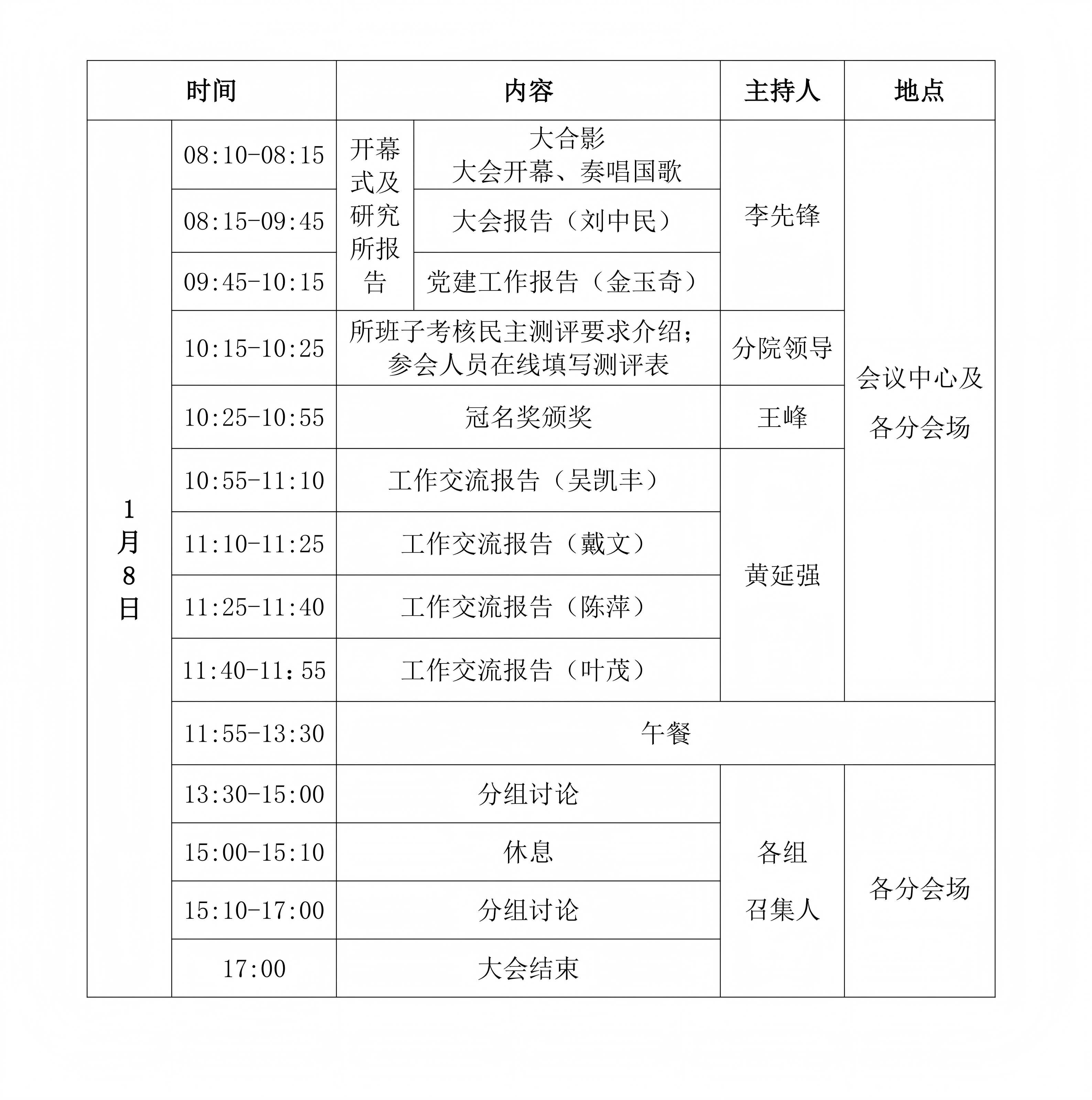 三、参会人员:所领导、所务委员、党委委员、纪委委员、研究室(部)副高级以上人员及党支部书记、工会委员会委员、分工会主席、职代会代表、团委委员、团支部书记、职能部门全体人员、公司负责人、离退休代表、研究生会成员。