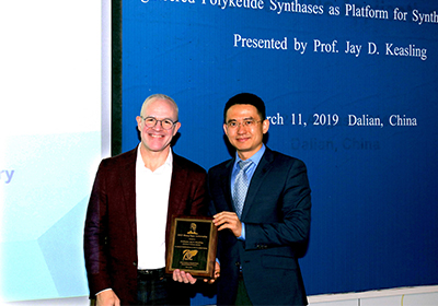 3月11日,美国国家工程院院士、美国艺术与科学学院院士、伯克利加州大学Jay D. Keasling教授应赵宗保研究员邀请,来我所作了题为“Engineered Polyketide Synthases as Platform for Synthetic Chemistry”的第三十一期张大煜讲座报告。副所长蔡睿、职能部门相关负责人,以及所内外相关领域科研人员和研究生150余人到场听取了报告。报告由赵宗保主持,蔡睿代表我所向Keasling颁发了张大煜讲座证书和我所荣誉教授证书。