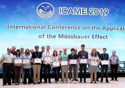 国际穆斯堡尔效应应用委员会(International Board on the Applications of the Moessbauer Effect, IBAME)每两年颁发一次青年科学家奖和科学奖。2019年IBAME青年科学家奖由我所毕业生、现新加坡南洋理工大学李旭宁博士和日本京都大学Makina Saito博士获得,科学奖由美国阿贡国家实验室Ercan Alp博士和以色列希伯来大学Israel Nowik教授获得。为鼓励更多的青年学者积极参与穆斯堡尔效应应用研究,会议还设立了ICAME墙报奖,由30多个国家的IBAME委员无记名投票评选出了10个最佳墙报,来自法国、德国、日本等国的10名青年科学家获得该奖项。