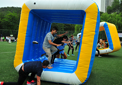 本次活动是我所举办的第六届“趣味运动嘉年华”活动,共有18支队伍、近千人次参加。本次活动根据我所实际情况和文化建设重点,精心设计了6个比赛项目和2个互动项目,包括“志在四方”、“砥砺前行”、“百发百中”、“凝心聚力”、“不忘初心”、拔河、“70航拍”、“七秩梦圆”等。其中,在开幕式的“70航拍”活动中,队员们手举小红旗,仰望空中无人机,共同欢快祝贺我所生日快乐;在闭幕式的 “七秩梦圆”活动中,约400名参赛队员围坐成圈,中心凸显“祝贺大连化物所70岁生日快乐”的大红条幅,大家一起摇动手中长绳,整齐划一的动作体现了团队凝聚力和永不放弃、坚持到底的决心,整齐的口号声响彻足球场。