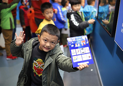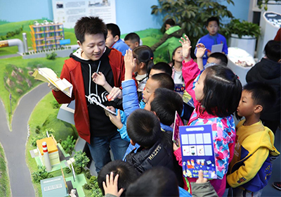 另外,今年恰逢元素周期表发现150周年,活动中孩子们可通过与志愿者的互动收集元素精灵贴纸,最终获得神秘小礼物,这一环节很好地引导孩子们在活动中积极思考,活跃思维。