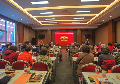随后,戴东旭研究员作了题为《大连相干光源介绍》的报告。戴东旭围绕光源技术的历史沿革、光源在科学研究中的重要作用等方面,为老教授详细介绍了大连相干光源建设的进展情况。马小军研究员作了题为《海洋生物医学材料及应用》的报告。他用通俗易懂的语言,从生物医用材料简介、海洋多糖生物医用材料、植入与药物制剂、微囊化细胞体外、体内应用等方面,为老教授们解读了海洋生物医学方面的新进展。两位老师的报告非常精彩,得到了与会人员的一致认可。