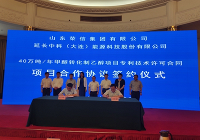 签约仪式上,中国科学院沈阳分院与山东省化专办签署了战略合作协议,延长中科(大连)能源科技股份有限公司与荣信集团签署了“40万吨/年甲醇转化制乙醇项目专利技术许可合同”。此次协议是在深入落实中国科学院与山东省人民政府战略合作协议,推动山东新旧动能转换国家战略实施的大背景下签署的。各方将紧密围绕山东省经济社会发展的科技需求,务实开展全方位、多领域的全面合作,为推进山东省新旧动能转换和地方经济高质量发展提供坚实的科技支撑和创新保障。