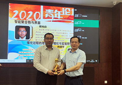 7月15日,由我所青年创新促进会(以下简称“青促会”)、所团委、所博士后联谊会共同举办的“大连化物所青年论坛”第十三讲在交流中心举行。本次论坛邀请了我所生物分离与界面分子机制创新特区研究组(18T7组)组长卿光焱研究员与理论催化创新特区研究组(05T8组)组长肖建平研究员,他们分别以“智能聚合物与界面”和“催化过程的理论计算模拟与实验研究的关系”为题作了报告。本次论坛由青促会副理事长焦峰副研究员主持,所内青年职工、博士后、研究生等听取了报告。党委副书记、纪委书记毛志远出席本次论坛,并为两位报告人颁发了“大连化物所青年论坛”特制奖杯。