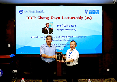 7月13日,清华大学饶子和院士应邀在我所交流中心作了题为“Living in the cell: Understand SARS-CoV-2 replication and transcription from structures”的第35期张大煜讲座报告。所长刘中民、李灿院士、大连各高校及我所的科研人员和研究生等100余人参加了报告会。报告会由李国辉研究员主持,会上刘中民向饶子和颁发了张大煜讲座证书和我所荣誉教授证书。