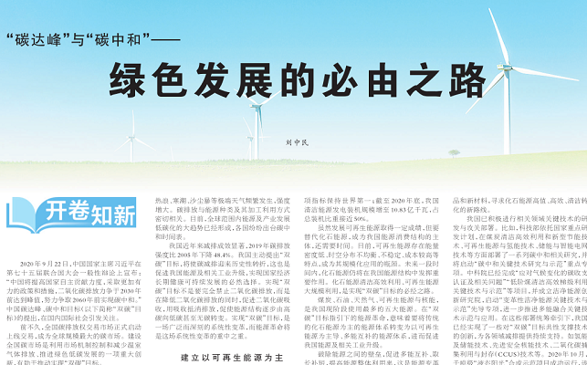 8月13日,我所刘中民院士受邀在《人民日报》“开卷知新”栏目发表《绿色发展的必由之路》主题文章,介绍“双碳”知识概念及我国实现“双碳”目标的必要性、紧迫性和可实施路径等。