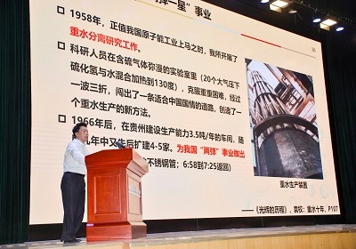 党委书记金玉奇以《学习七一讲话,赓续红色血脉,更好地承担起“国家队”“国家人”的历史使命》为题作了专题报告。金玉奇首先以“七一”讲话中的“数字密码”为主线,带领与会人员系统学习了习近平总书记在庆祝中国共产党成立100周年大会上的重要讲话精神,之后通过介绍我所在不同历史时期对国家的贡献和发展历程中的重要人物、典型研究团队的事迹,生动的诠释了我所在70余年的历史中始终流淌的红色血脉和传承的爱国基因。报告最后指出,要强化“国家队”“国家人”意识,心系“国家事“肩扛“国家责”,响应党中央建设世界科技强国的号召。