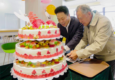 午餐中,伴随着《祝你生日快乐》的乐曲声,金玉奇和90岁的离休干部蔡海林共同切开了祝寿蛋糕,现场气氛热烈而欢快,老同志们个个笑逐颜开,脸上洋溢着幸福的喜悦。金玉奇感谢老同志为我所的发展作出的不可磨灭的贡献,祝福老同志们重阳节快乐,福如东海,寿比南山,家庭美满,幸福安康!