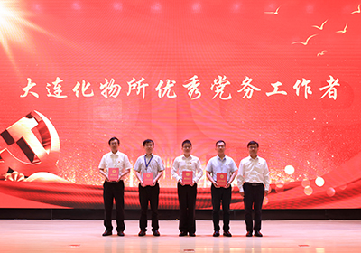 会议表彰了催化与新材料研究室第一党支部等5个“大连化物所先进基层党组织”、马怀军等5名“大连化物所优秀党务工作者”以及王二东等21名“大连化物所优秀共产党员”,副所长、党委委员王峰,党委委员王晓东为我所“一先两优”代表颁发了奖牌和证书。