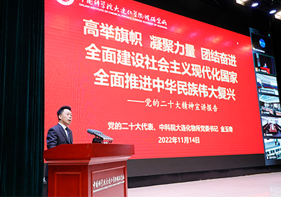 党委书记金玉奇以《高举旗帜 凝聚力量 团结奋进 全面建设社会主义现代化国家 全面推进中华民族伟大复兴》为题,作了党的二十大精神宣讲报告。他首先介绍了党的二十大的总体情况,之后全面详细解读了党的二十大精神。最后,金玉奇分享了作为党的二十大代表的参会体会,他指出,科技工作者要心怀“国之大者”,要不断提高政治判断力、政治领悟力、政治执行力,要牢记“两加快、一努力”的职责使命,为实现高水平科技自立自强作出新的更大的贡献,并再次强调学习宣传贯彻党的二十大精神是当前和今后一个时期全党全国的首要政治任务,具有重大现实意义和深远历史意义。