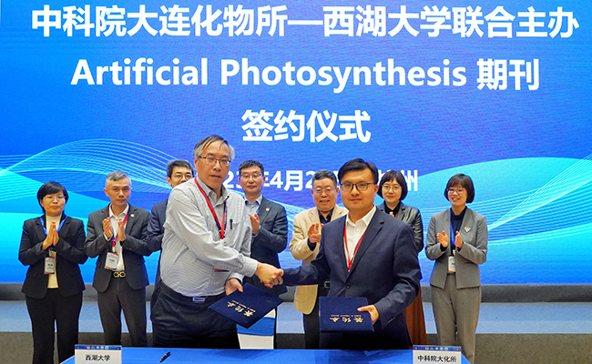 4月26日,我所与西湖大学在杭州举行了联合创办Artificial Photosynthesis(《人工光合成》,以下简称“AP”)英文国际科技期刊的协议签署仪式。我所副所长王峰,西湖大学学术委员会主任、理学院院长邓力教授分别代表双方签署了联合创刊协议。西湖大学孙立成院士、科技合作部主任丁元胜,我所李灿院士及职能部门相关人员参加活动。