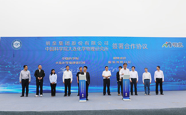 孙洪海介绍了明泉集团的业务板块、发展规划、园区建设等情况,他表示,明泉集团与大连化物所在煤炭优化利用、高端化学品开发、新能源开发与利用等领域具有广阔的合作前景,希望双方进一步加强技术合作与产业化,保障我国高性能胺基新材料战略需求。王长军表示,大连化物所与明泉集团的合作为济南高质量发展增添了新的动力,章丘区将进一步优化营商环境、解决发展难题、提供全方位服务,为大连化物所与明泉集团的合作保驾护航。金玉奇表示,“双碳”目标与高质量发展的要求为我们坚持自主创新、通过清洁绿色关键技术突破、构建有机融合的低碳关键技术体系指明了方向和道路,希望双方进一步优势互补,突破高端化学品关键技术,为山东新旧动能转换贡献积极力量。