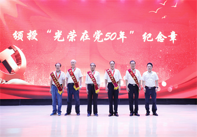 会上还举行了2023年“光荣在党50年”纪念章颁授仪式。杜东海、刘吉有、李丰春、王清海、孙明基、曲天明六位退休党员同志获颁“光荣在党50年”纪念章。