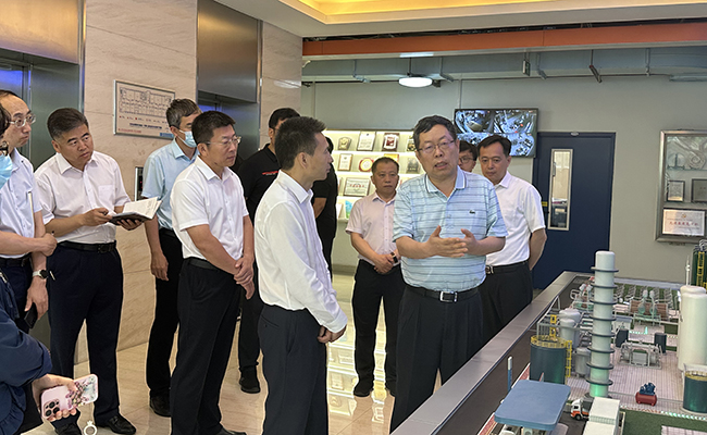 调研期间,蒋天宝一行深入低碳催化与工程研究部和太阳能研究部,详细了解科研技术进展和成果转化相关情况。刘中民详细介绍了我所的历史沿革、在“双碳”目标下的科技路径、科技创新情况以及重要科技成果贡献等;并表示,我所将始终围绕国家重大需求,积极把握国家创新体系建设新机遇,以科技助力辽宁振兴发展。蒋天宝指出,大连化物所研究领域涉及面广、综合性强,是基础研究、应用研究、技术转移转化全链条贯通的综合性研究所,为我国科技事业做出巨大贡献;希望研究所进一步发挥人才优势和技术优势,为辽宁全面振兴发展做出新的更大贡献。(文/图 于瀚祥)