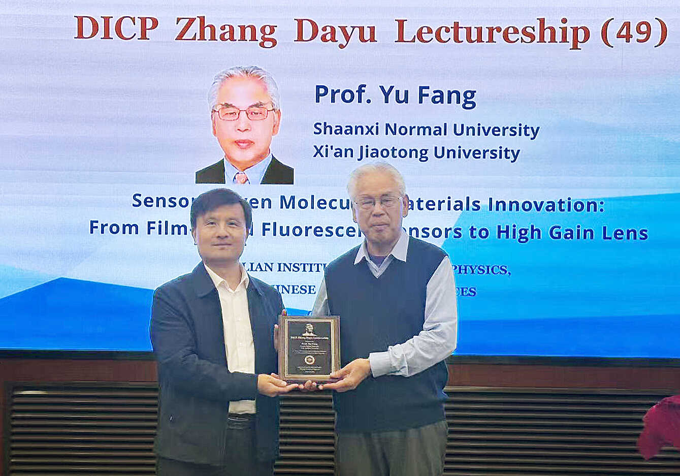 10月16日,陕西师范大学房喻院士应邀在我所交流中心会议室作了题为“传感驱动的分子材料创新:从荧光传感到高增益透镜(Sensor-Driven Innovation in Molecular Materials: From Fluorescent Sensors to High-Gain Lens)”的第49期张大煜讲座。我所李灿院士、张涛院士、副所长王峰、科研及职能部门相关人员等180余人通过线下和线上方式参加了报告会,报告会由冯亮研究员主持。会上,王峰向房喻颁发了张大煜讲座证书。