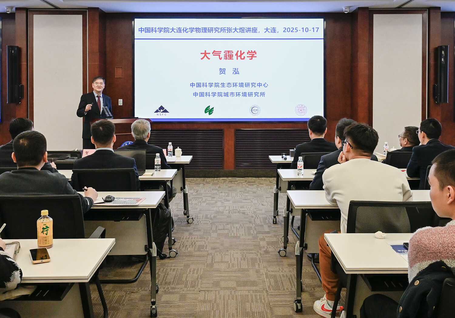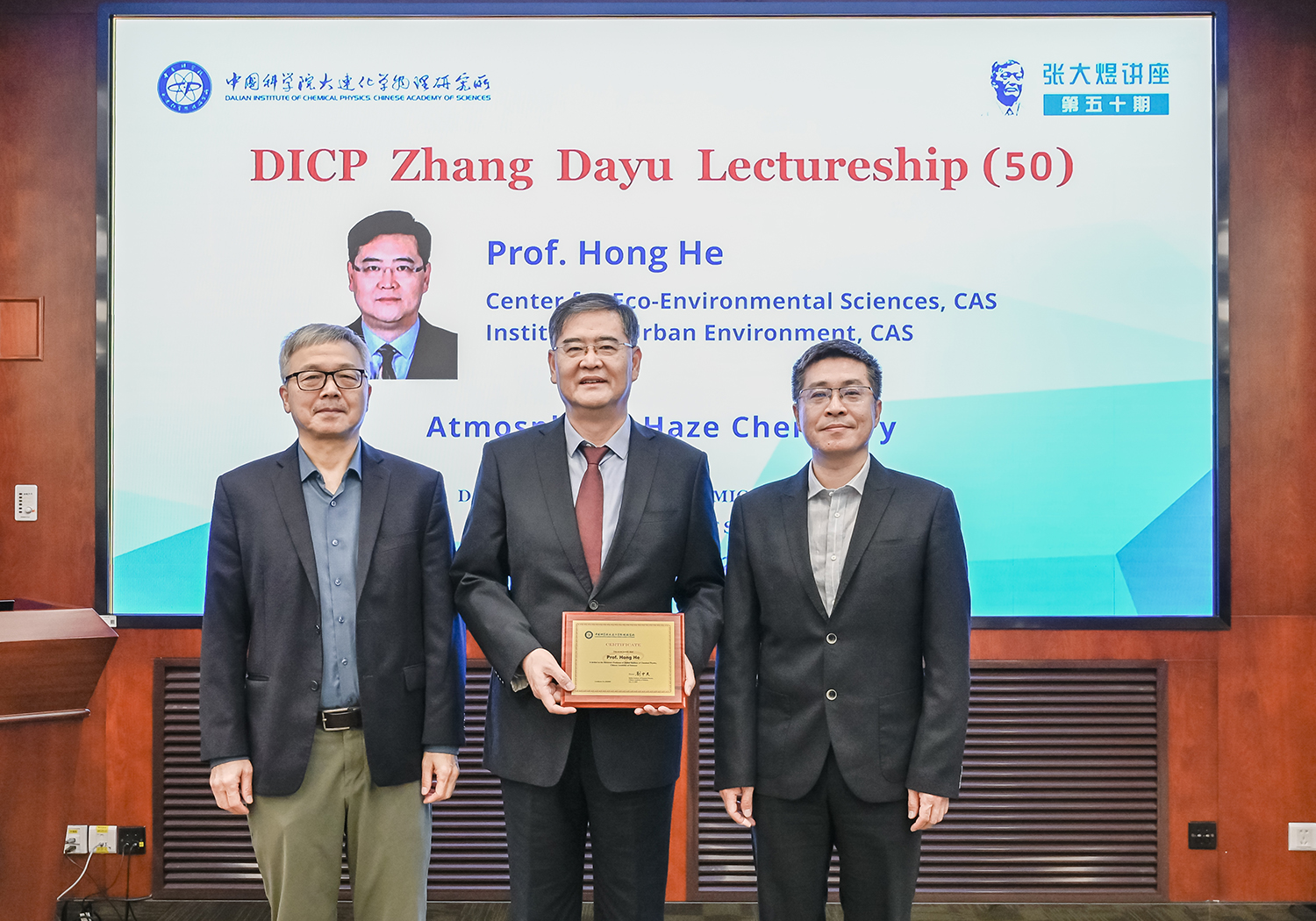 10月17日,中国科学院生态环境研究中心、中国科学院城市环境研究所贺泓院士应邀在我所交流中心会议室作了题为“大气霾化学”的第50期张大煜讲座。我所杨学明院士、纪委书记王明辉、科研及职能部门相关人员等180余人通过线下和线上方式参加了报告会,报告会由杨学明主持。会上,王明辉向贺泓颁发了张大煜讲座证书。