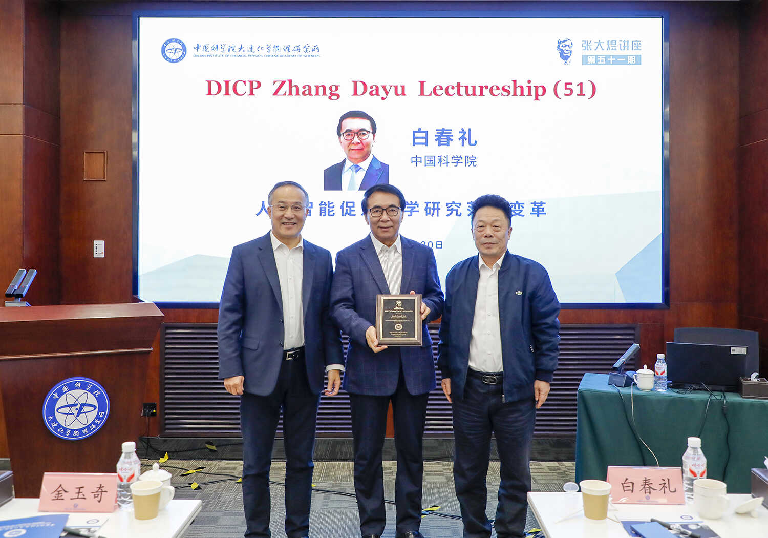 10月20日上午,中国科学院原院长白春礼院士应邀在我所交流中心会议室作了题为“人工智能促进化学研究范式变革”的第51期张大煜讲座。我所张涛院士、党委书记金玉奇、副所长黄延强、科研及职能部门相关人员等200余人通过线下和线上方式参加了报告会,报告会由张涛主持。会上,金玉奇向白春礼颁发了张大煜讲座证书。