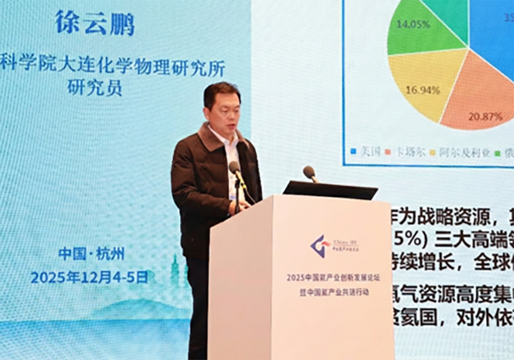 近日,在杭州举办的“2025中国氦产业创新发展论坛暨中国氦产业共链行动会议”正式发布了中国氦产业链十大成果,我所节能与环境研究部膜材料工程研究组(DNL0906组)任吉中研究员团队自主研发的“聚酰亚胺中空纤维提氦专用膜组件”入选。此外,我所低碳催化与工程研究部烃类转化研究组(DNL1205组)徐云鹏研究员受邀,在本次大会上围绕“分子筛型氦气低温精制专用吸附剂技术”作大会主旨报告。