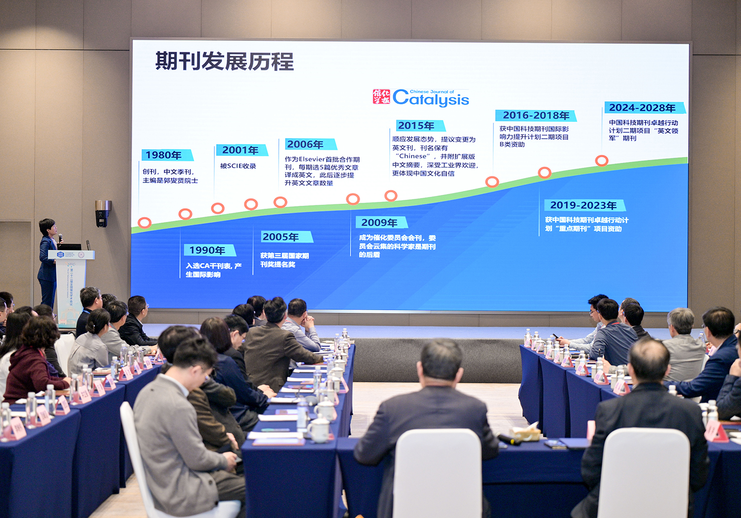 会议宣布成立第七届《催化学报》编辑委员会,李灿、张涛共同为新任副主编颁发了聘书。《催化学报》编辑部主任尹红梅汇报了期刊近期发展情况:2024年期刊SCI影响因子提升至17.7,在国际应用化学领域76种期刊中位列第一,学术影响力持续增强;期刊入选“中国科技期刊卓越行动计划”二期项目英文领军期刊与“中国科学院精品科技期刊建设试点项目”;期刊持续被评为中国科学院期刊分区化学类1区Top期刊,连续13年入选“中国最具国际影响力学术期刊”;作为催化领域重要学术平台,期刊发表的多项原创性成果已实现产业化应用,为国家实现“双碳”目标提供了重要技术支撑。