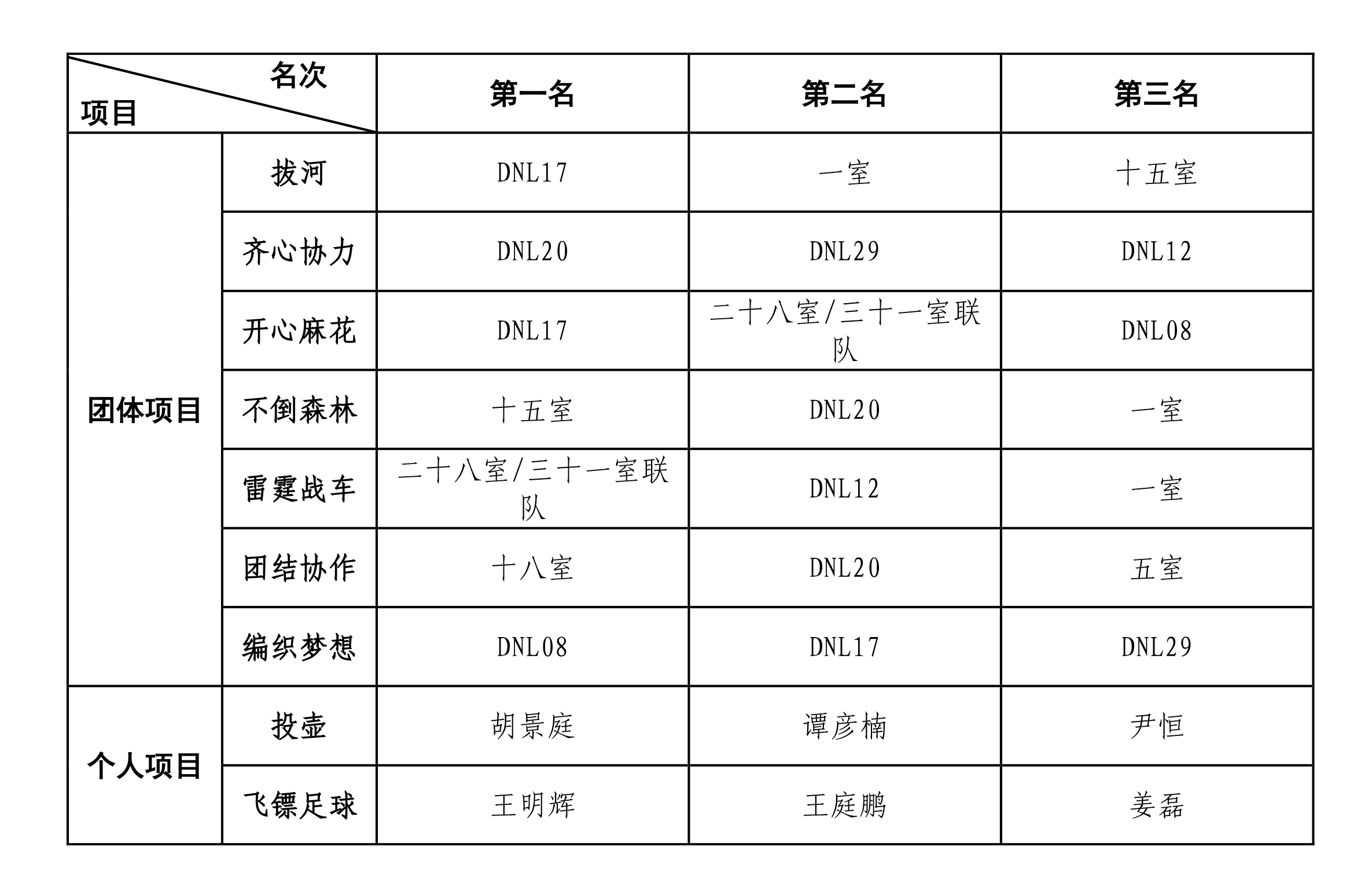 附:各单项成绩名次